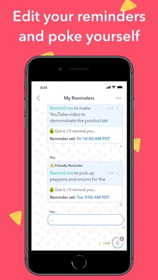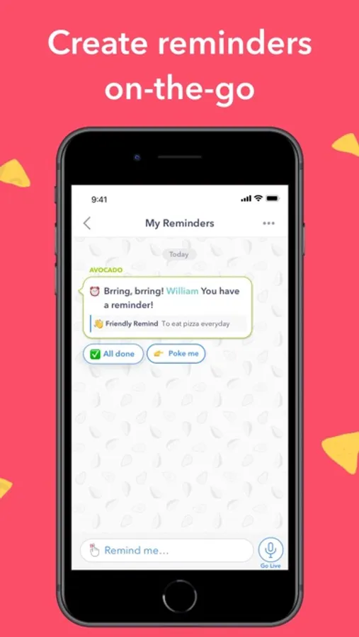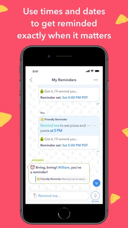 "Avocado, Remind Me" is built for voice. Capture reminders before your forget them