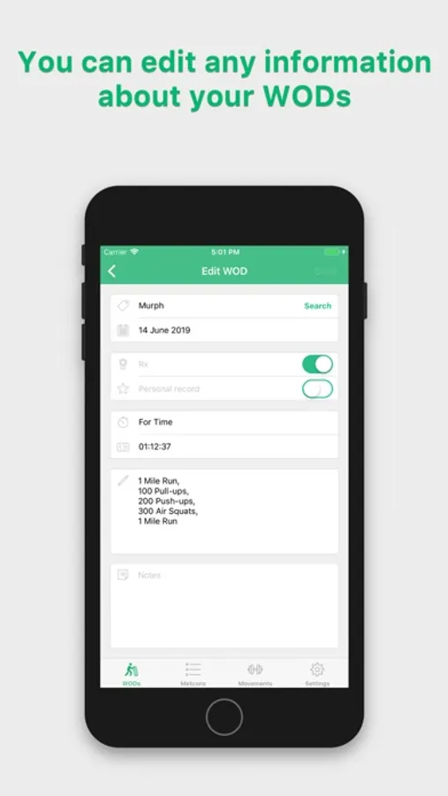 • Tons of pre-saved CrossFit Benchmarks and more.