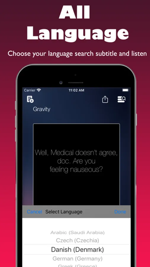 Listen downloaded subtitles in your own language while you are watching foreign movie.
