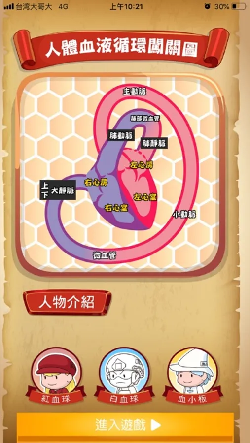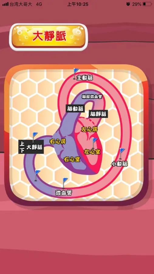 配合翰林版國中自然7上CH4人體的循環系統,透過心臟血液循環闖關圖,紅血球該如何以正確路線且正確順利地運輸氧氣及二氧化碳!