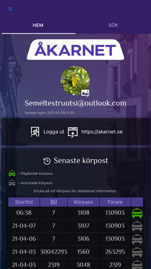 Med Åkarnet kan man se körpassdata från följande taxametrar: Halda M1, Halda M2 och Semel C30.