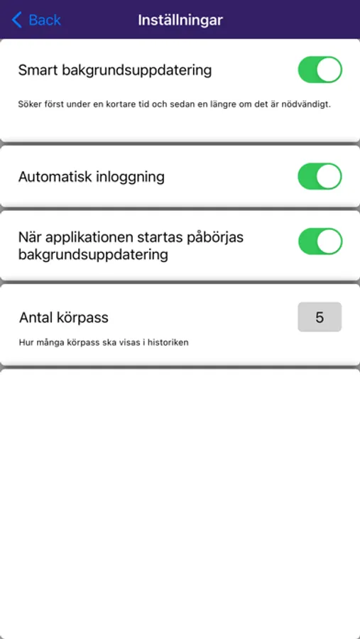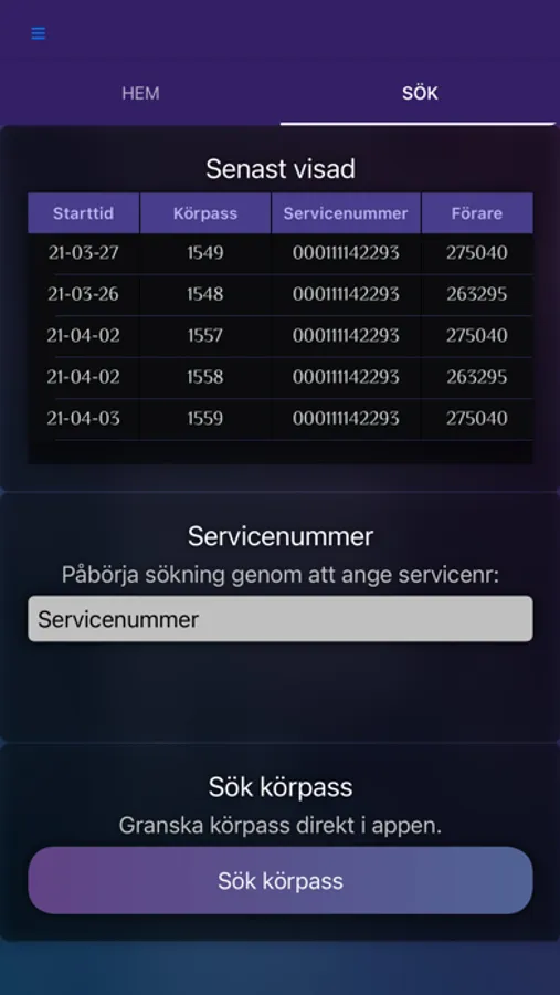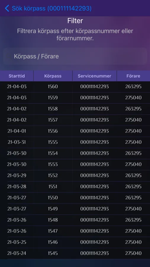 Man kan för varje enskilt körpass se: