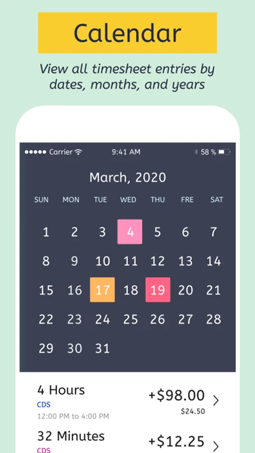 Manage all your timesheet in a calendar and view your time entries by dates.
