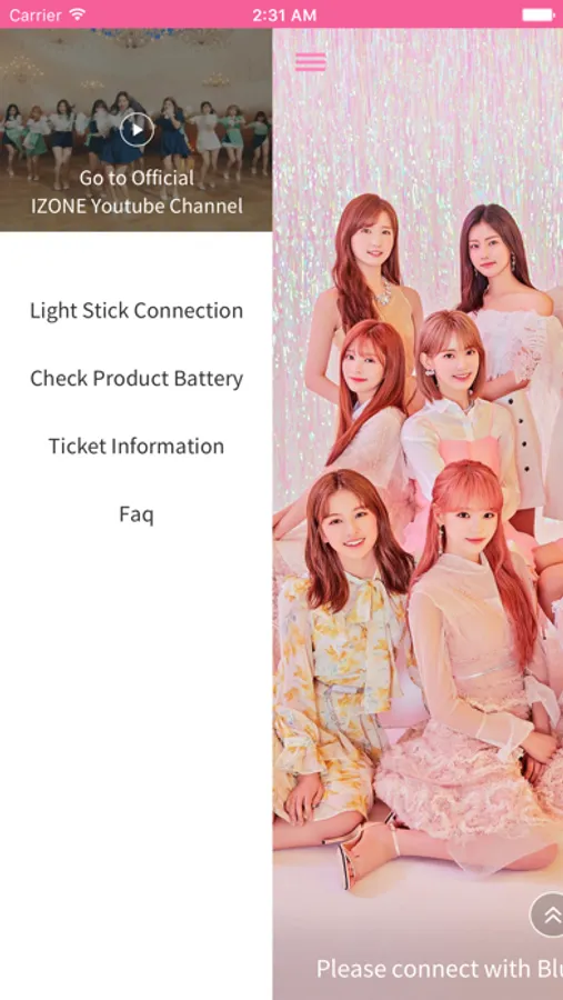 아이즈원의 공식 응원봉을 사용하기 위한 앱입니다. 앱을 통해 다양한 조명 연출 및 제어가 가능하며 공연장에서 다양한 연출을 통해 좀 더 즐거운 공연을 관람하실 수 있습니다.