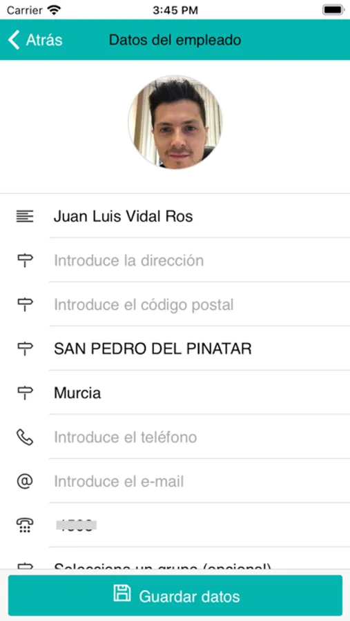 Se puede configurar cada empleado con múltiples parámetros:
