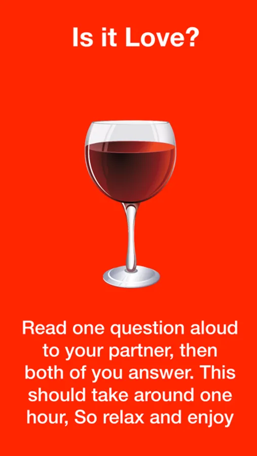 Sit down and relax. Take turns reading one question aloud to your partner, then both of you answer and enjoy a full glass of wine while answering the questions.
