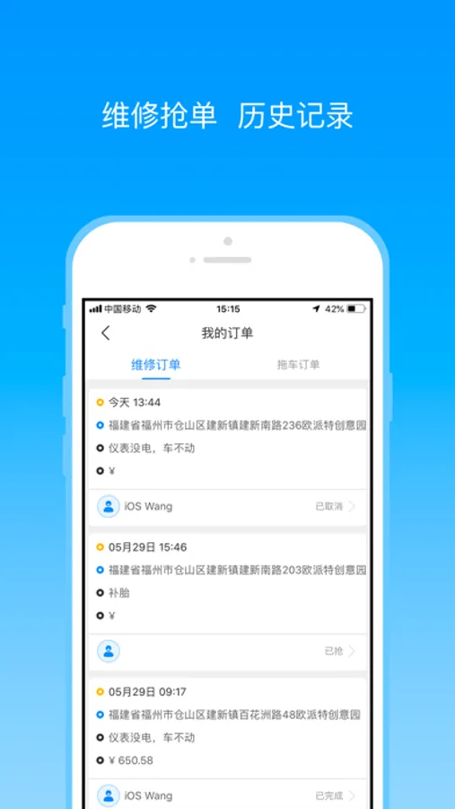 “优行者”电动自行车服务平台是福建亿佰客信息科技有限公司集电动自行车行业几十年的经营理念,精心打造的、以电动自行车为主体的全生态圈服务平台。为实现“优行者”电动自行车服务平台提供的车主端服务,“优行者”维修端提供实时响应车主请求服务,包括路面维修请求抢单、预约上门服务、故障车辆拖行、门店预约工位发布等功能。