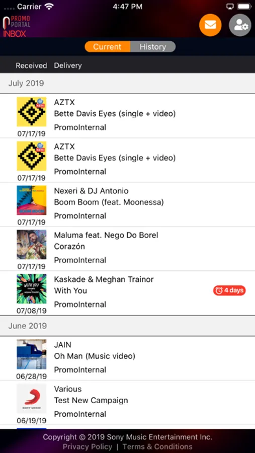 Promo Portal is a mobile application designed for delivery of the latest music promotions. Users can receive regular deliveries of promotional content including audio, video, images, and documents. Registered users can view deliveries on iPhones and iPads. Users can be alerted of new tracks and promotions through app notifications. There's no need to contend with spam filters or lost emails!