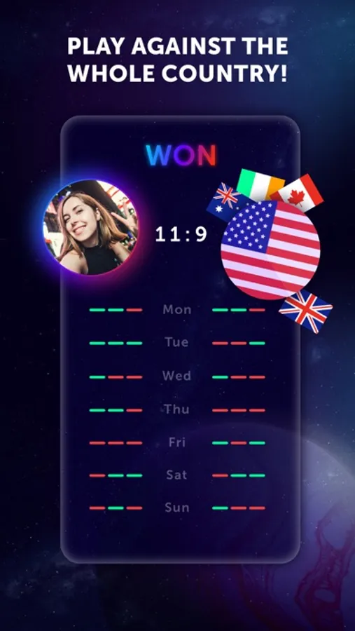 • You against the whole country. Seize the daily opportunity to compete against the rest of your country!