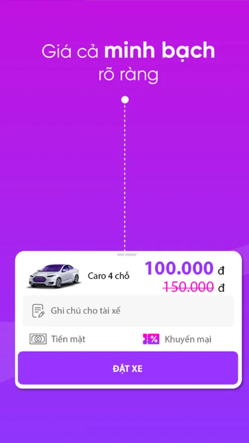 Đặt xe chỉ bằng 1 chạm, tiết kiệm thời gian nhập địa chỉ.
