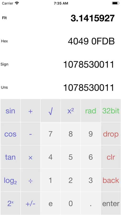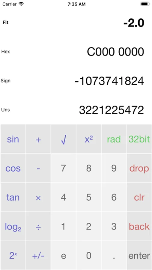 This app converts between IEEE floating-point representation and the corresponding raw values. It also converts between hexadecimal and decimal and is a simple RPN calculator.