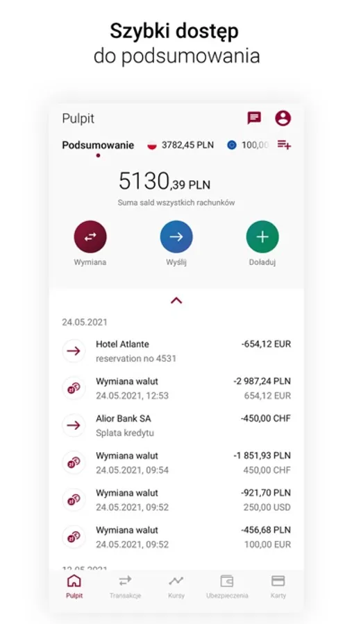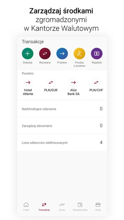 Alior Bank Kantor Walutowy is an online banking platform that provides clients with secure, quick and convenient access to currency exchange. Our mobile application offers a wide range of functionalities that allow you to manage your finances on a mobile device without any limits. Use it whenever you want, wherever you are.