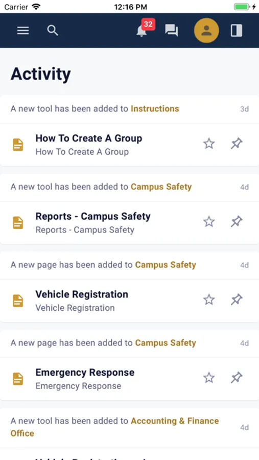 See important announcements, conversations, events and resources in one place.