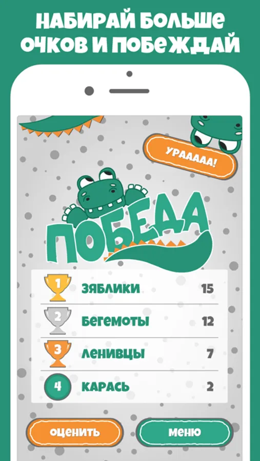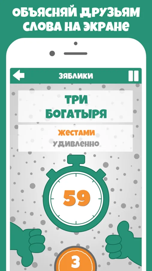 ►Игрок из первой команды берет телефон и объясняет слова с экрана своей команде выбранным способом. Например, жестами.