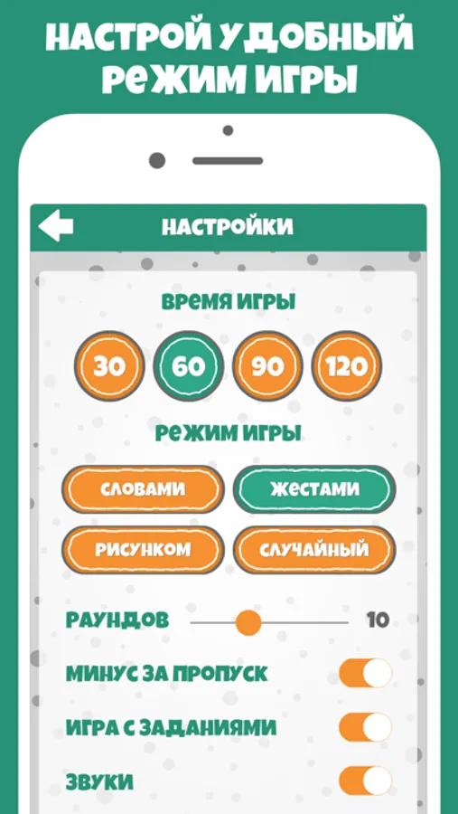 ►Настройте удобную для вас игру – установите время, количество раундов, задания, штрафы и другие параметры