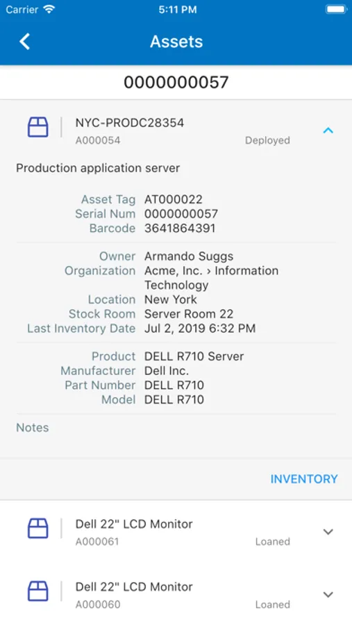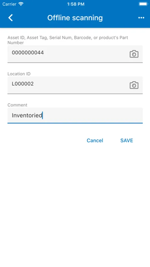 Scan the Asset ID, Asset Tag, Serial Number, Barcode, or UPC barcode using the device's camera, and view asset details on the screen. Perform physical inventory on the spot by confirming the physical location of your assets. If wireless connection is temporarily unavailable, Alloy Inventory Scanner stores inventory results in the offline queue until the device is online again.