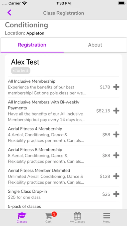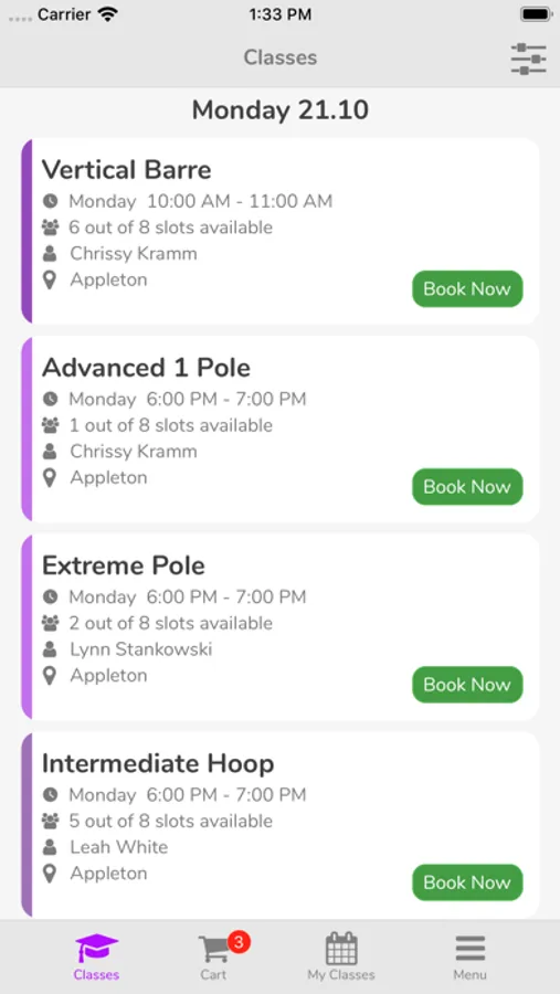 Aerial Dance Wi has location in Appleton & Green Bay. Use this app to view your schedule, register for classes, and take control of your online booking account.