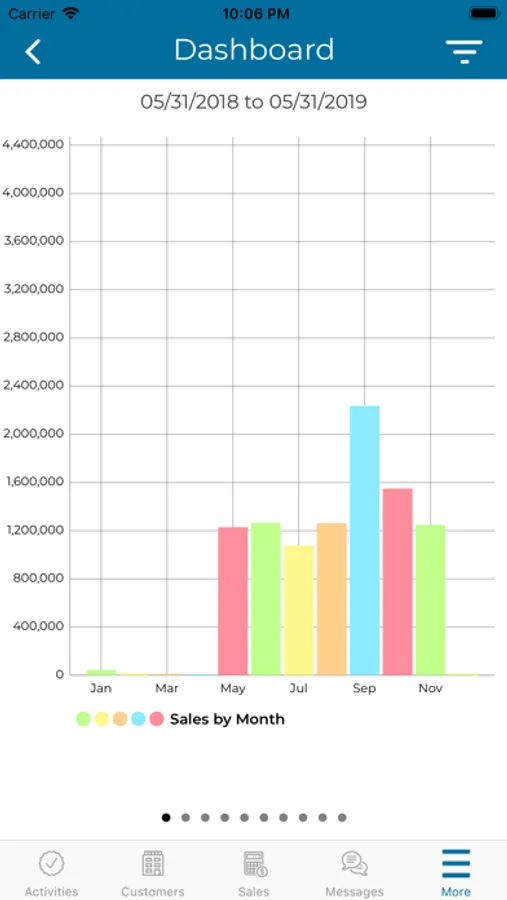 Mobile CRM application for the Midnight MIS featuring activity management, customer management, contact management, internal instant messenger and charted data visualisations.