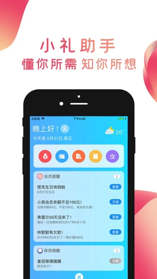针对实体门店经营特性,多功能集于一身。安全、稳定、智能有效帮忙管理经营,如帐单记录管理、客户回访互动、活动推广等等。让您省时省力的同时,管理经营更高效与人性化。
