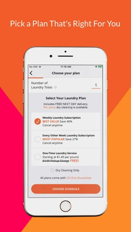 Make doing laundry a thing of the past. Our next day service gives you time back to focus more important things. Choose a convenient, affordable subscription plan or pay as you go. We'll pick up on your neighborhood’s Laundry Day and bring your laundry back cleaned, folded, and packed in a free Laundry Tote the very next day. We’ll even take care of your dry cleaning!