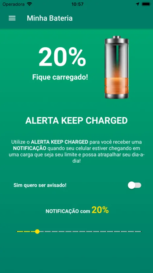Minha bateria é um recurso que se ativado te manda notificação quando sua bateria está acabando, tem a opção de escolher a porcentagem a ser notificado.