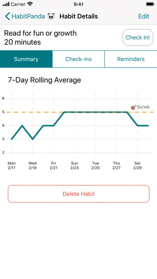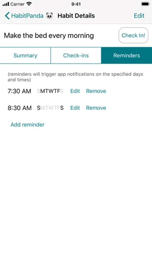 Just setup a new habit and the app will track how often you complete the habit behavior and provide insights into how well you are doing. You can also setup customizable reminders for each habit to increase awareness.