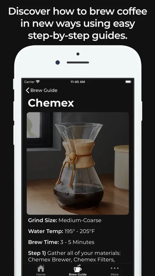 Coffee 101 is the ultimate coffee resource for iOS. This application provides you with brewing guides for some of the most popular brewers: Chemex, Hario V60, French Press, AeroPress, Cold Brew, Moka Pot, Espresso, and Turkish.
