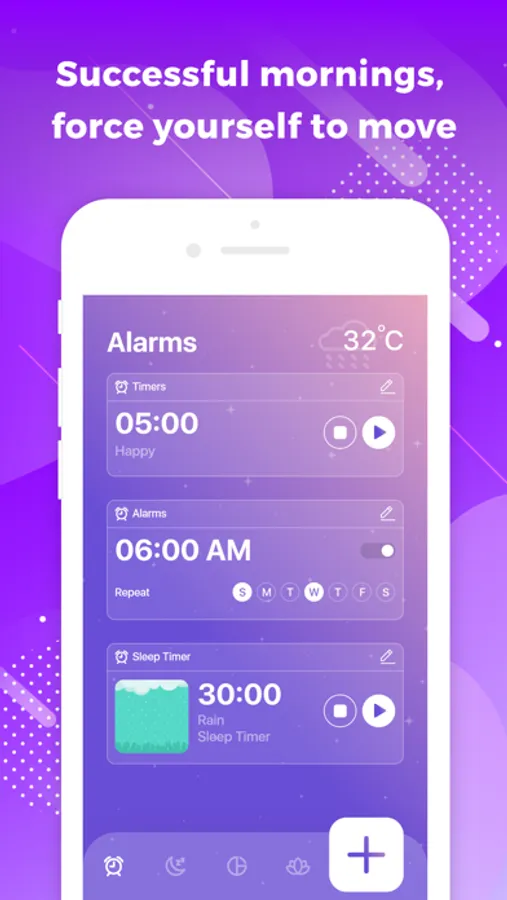 * Don’t worry about accidentally dismissing your alarm and falling asleep again; with just a couple of taps, you can select the activity you want to do to turn your alarm off.