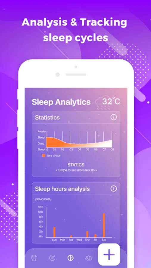 * Get informed of your sleeping habits by looking at your daily and weekly statistics to learn more about how well are your sleeping hours.