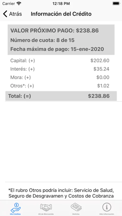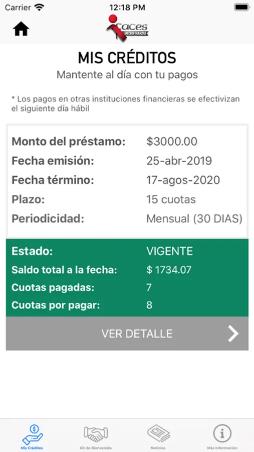 -Realice consultas del estado de su crédito vigente, fechas de pago, monto de cuotas y detalle de los valores a pagar.