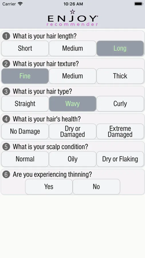 Quickly find the Enjoy Hair Care products most suitable for your hair type using the ENJOY Recommender app.