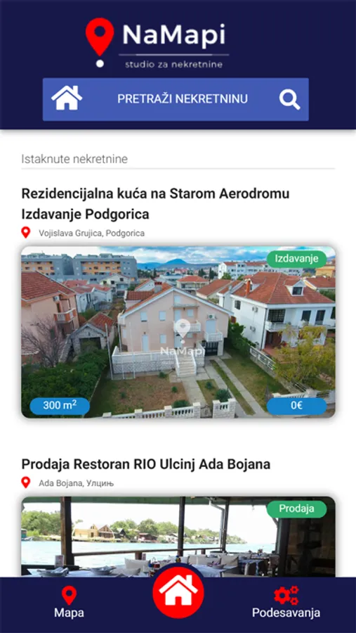 Nikada nije bilo lakše pronaći, zakupiti ili iznajmiti nekretninu, rentirati stan na dan ili pronaći turistički smještaj u Crnoj Gori... Aplikacija "Na Mapi" vam omogućava da jednostavno i brzo pronadjete ono što želite, ili dodate vašu nekretnu.