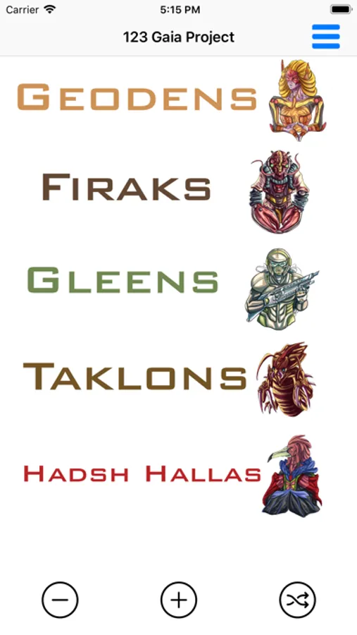 Tired of fumbling through player tableau's just to select your race in Gaia Project? Let this race randomizer do all the work for you. Simply choose the number of players and tap the scramble button.