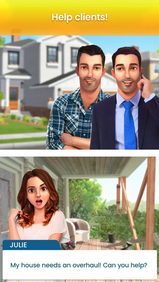 Drew and Jonathan Scott, famously known as the Property Brothers, need you to help clients achieve their home design dreams! With the brothers at your side, you’ll demo, renovate, customize, and design spaces with the same charm and style the twins have become known for. Play along to go behind the scenes with the brothers, learn their design tips and tricks, and discover fun facts about TV’s favorite design duo. Relaxing, fun puzzles let you earn coins to spend on décor. Exclusive voice-overs from the twins will give you all the encouragement you need to become a design star yourself!