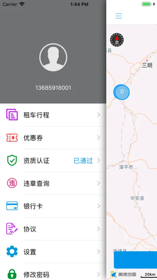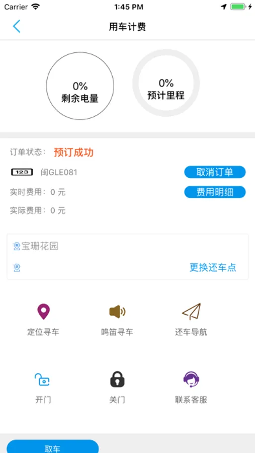 该产品是根据用户的里程数和使用时长以及还车地点来计算费用的电动汽车线上分时租赁APP。用户通过活脸识别资质认证,在线缴纳押金后,即可享有车辆租用使用权。用车过程中用户客户根据个人需求随时更换还车点、导航至还车点、门锁开关以及声音寻车等功能。支付方式采用主流的微信或者支付宝,分享行 程后会获得优惠券。