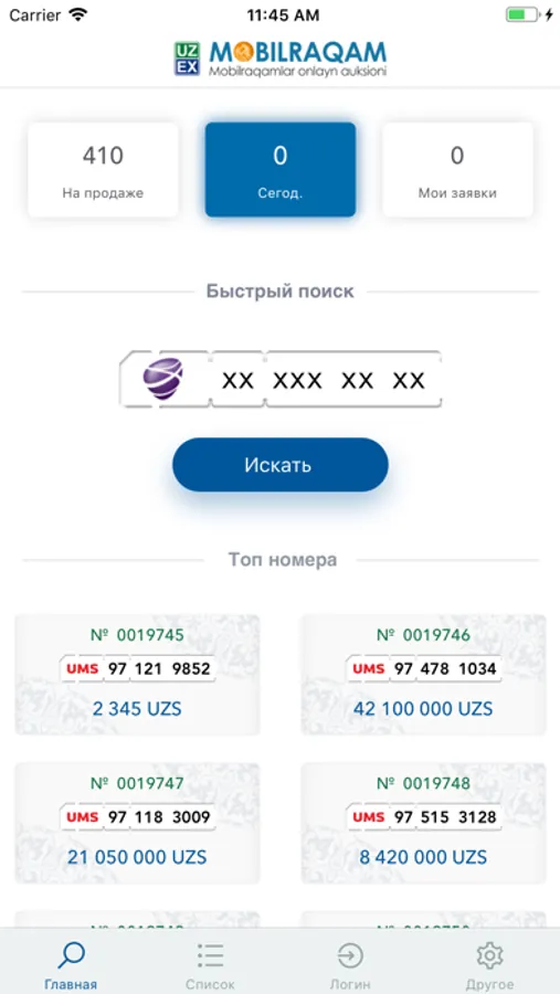 MobilRaqam - аукцион по приобретению номеров мобильных телефонов.