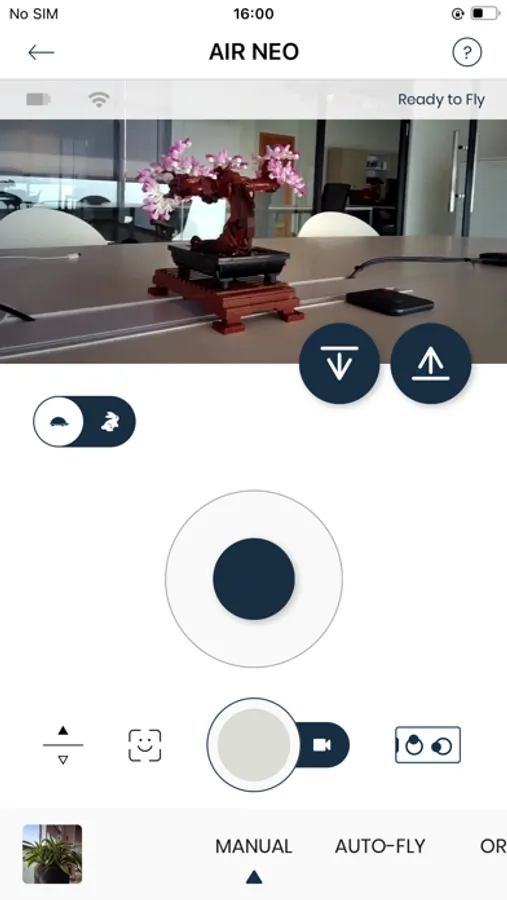 2. Manual Flight: Easily pilot your AirSelfie to ascend and descend using simple, familiar swipes of the joystick on the control panel in the app and tilting your smartphone for forward, backward and right or left directional movement.