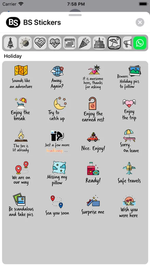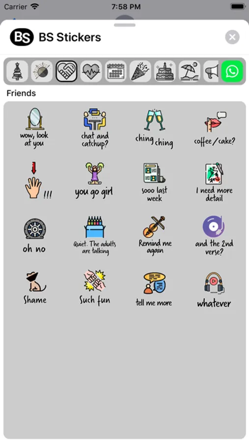 A collection of over 200 stickers that you can use for iMessage (and even Whatsapp!). Quirky, even cheeky, but definitely will make your messaging more fun. Ten collections: Festive, Day & Night, Friends, Love, Daily Replies, Congratulations, Birthday, Holiday, Encouragement and Condolences. Do we hear a BS ("basically stunning"!)?