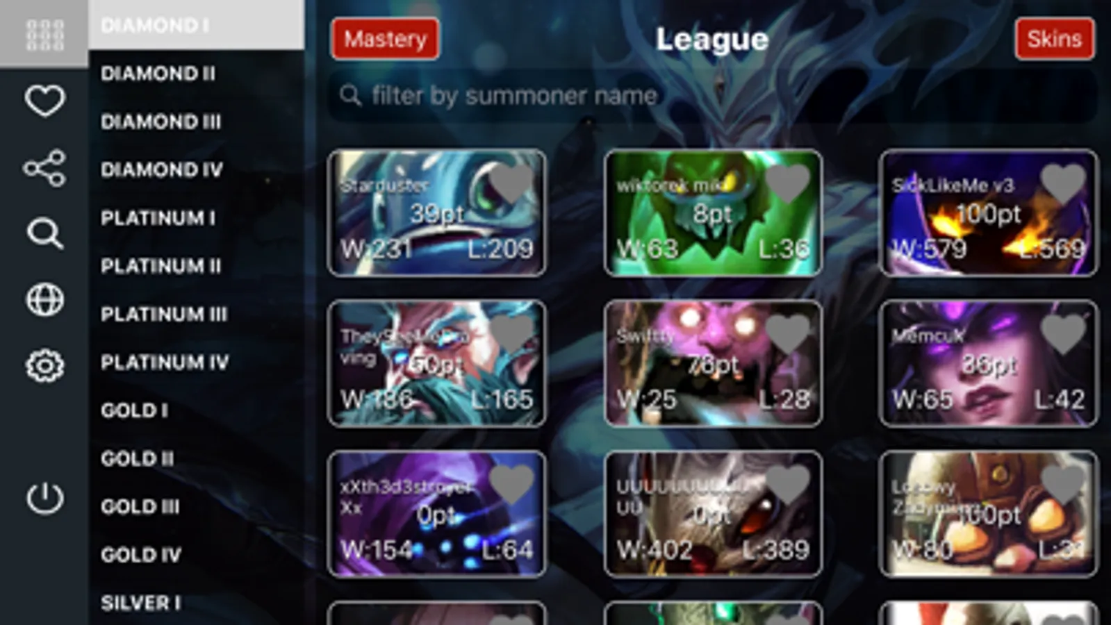 This app is your best source if you want to look up a summoner's match history, statistics and rank! Analyze your own gameplay or track your opponents to climb the ladder and reach master tier.