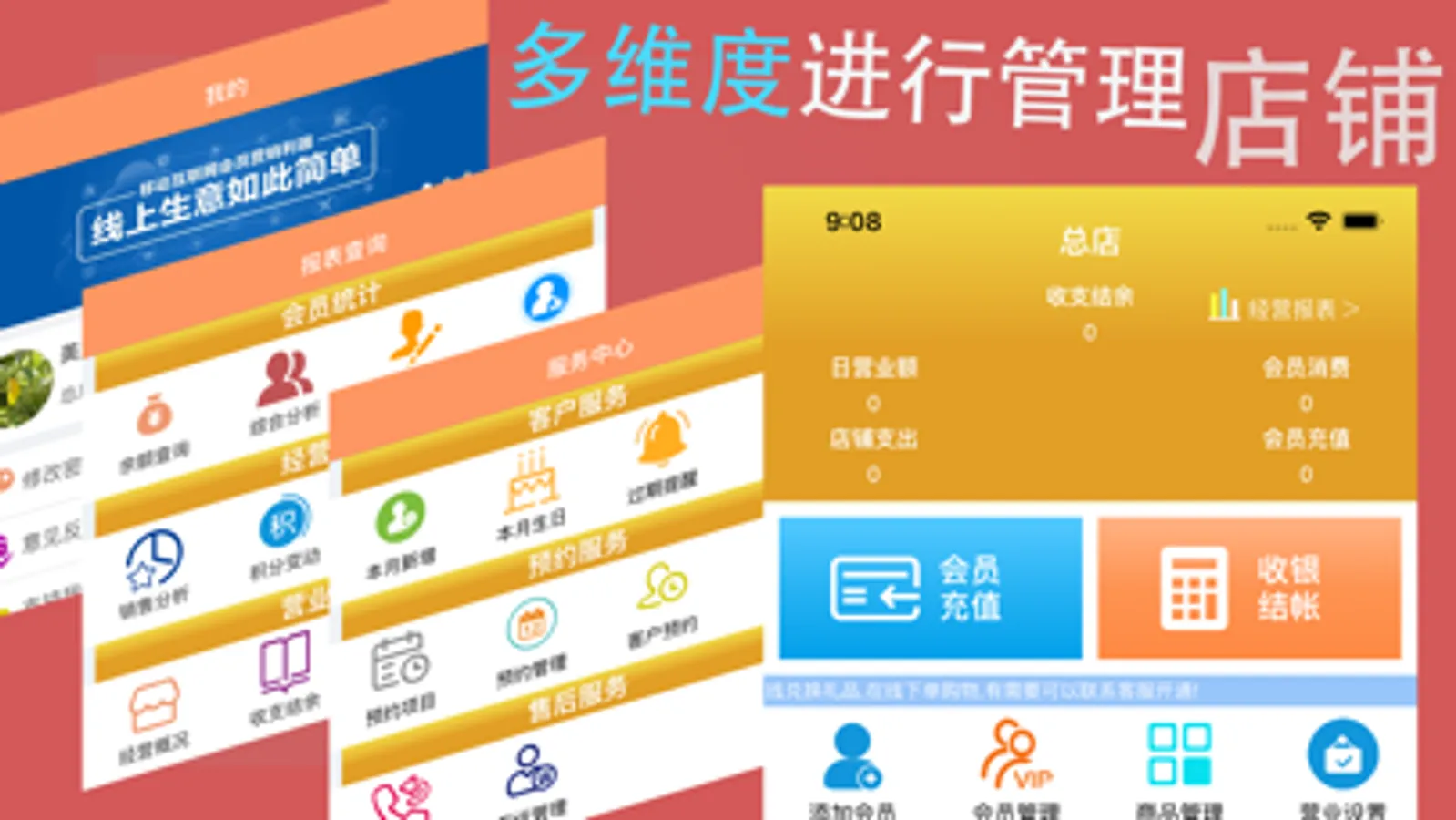 把店铺管理装进手机里,随时随地管账、管商品,看会员,打理店铺业务。