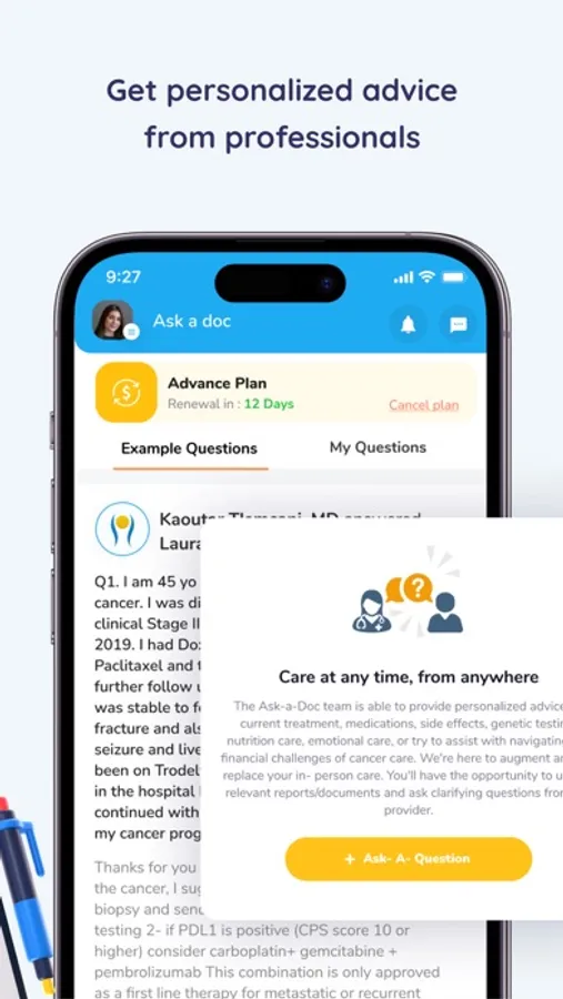 • Ask-a-Doc allows for private, personal questions to be asked to healthcare professionals (in-app subscription service, cheaper than a copay and unlimited questions)