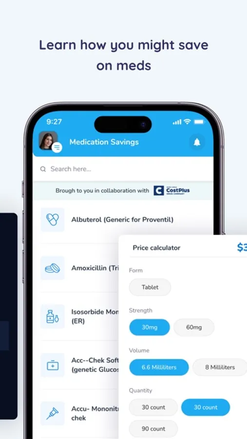 • Pill Reminder helps you stay on track with all medications and integrates with our Medication Savings suite, brought to you in collaboration with Mark Cuban Cost Plus Drug Company, so you can get the best price for your medications
