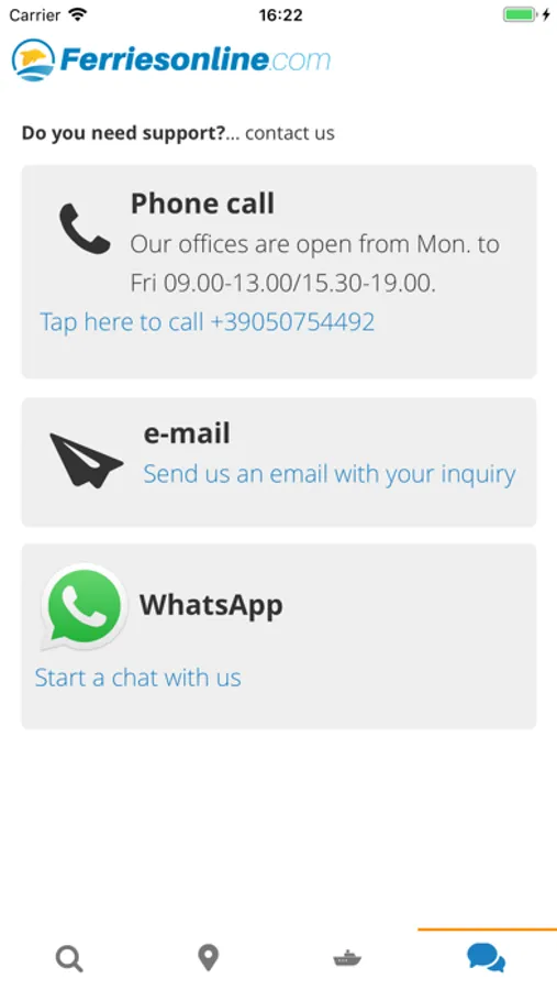 Choose a destination for your holiday and / or company and buy in a few taps.