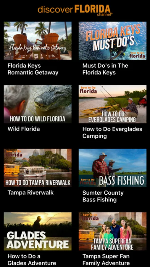 The Discover Florida Channel is the world's largest collection of Florida programming. You'll find hundreds of videos featuring the best Florida destinations, activities, and cuisine. Click below and discover all the possibilities Florida has to offer. For the best viewing experience download the Discover Florida Channel on your Apple or iOS device.