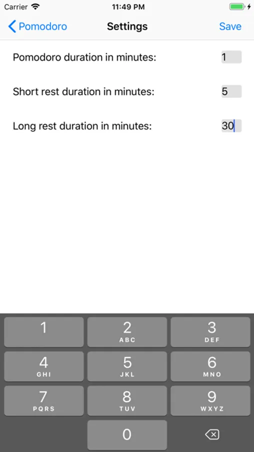 The different durations can be updated in the settings.