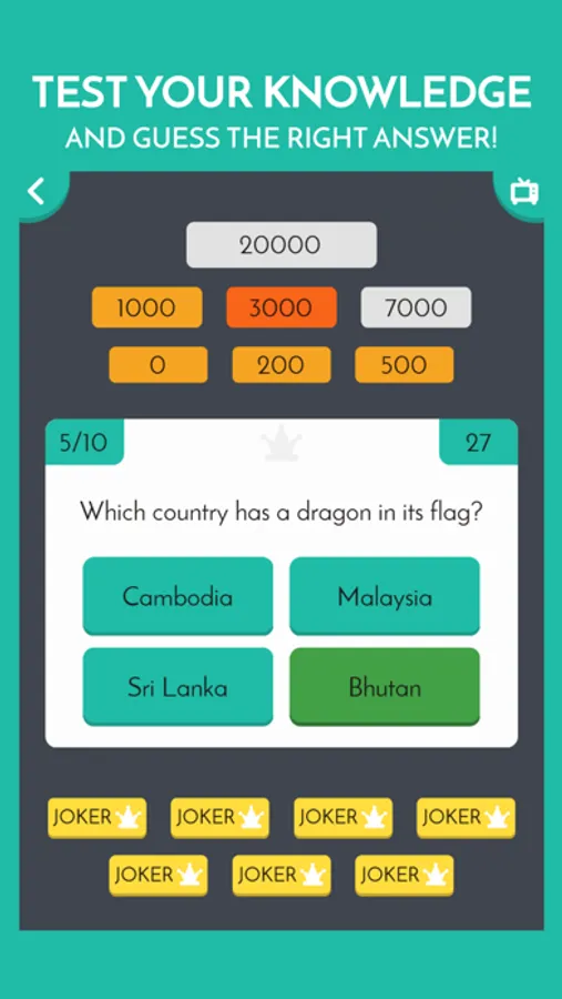 Test your knowledge and strategic skills with Joker Trivia Quiz! Feel the tension of the hot seat of a famous TV show. Do you dare to accept the challenge?