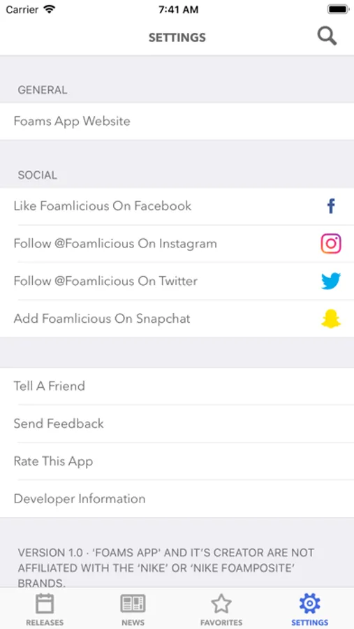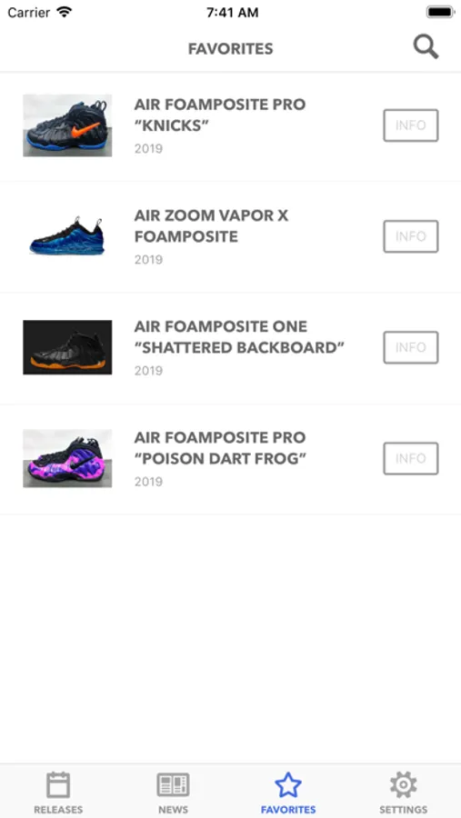 - Get updates (push notifications) when foams restock, for release dates, prices, and other general news