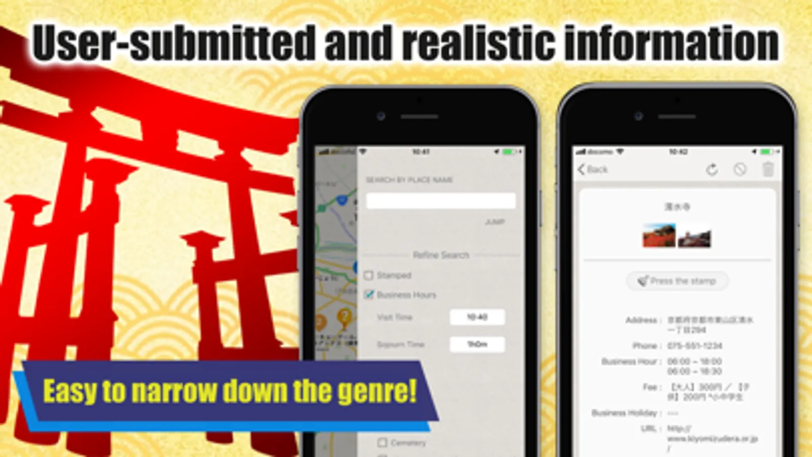 You can search for places in various ways, such as searching for free words or searching for categories such as temples, shrines, and sights.