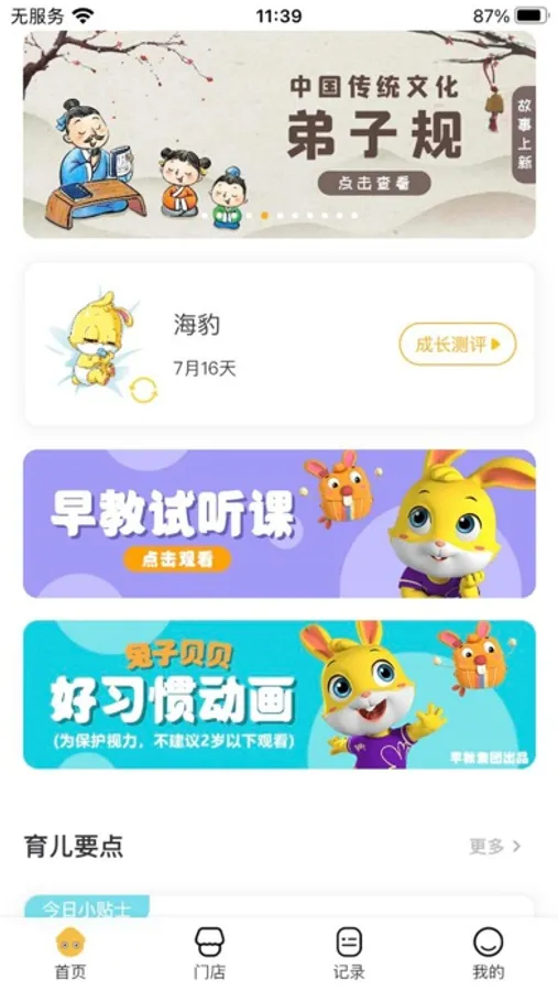 同伴贝宝专注亲子在家早教,致力引导宝宝养成好习惯、开发情商智商和身体机能,同时拥有专家课程指导父母科学育儿。涵盖动画儿歌、经典故事、辅食及育儿知识、父母课堂、疫苗提醒、成长测评等,帮助宝宝家庭一站式解决育儿难题。