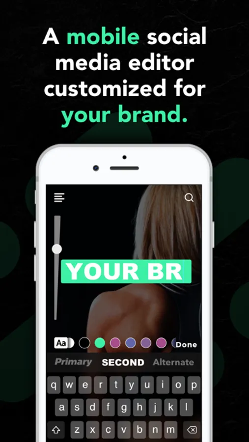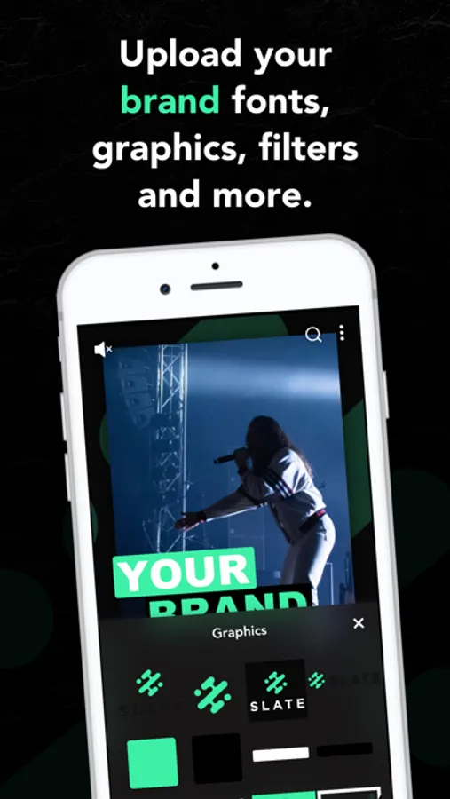 Customize your Slate mobile app with your brand using a dedicated web portal to upload your assets. Add the fonts, colors, graphics, gifs, captions, animated or static filters, borders and stickers that represent your brand and then use the Slate app to create on-brand, content in real-time.